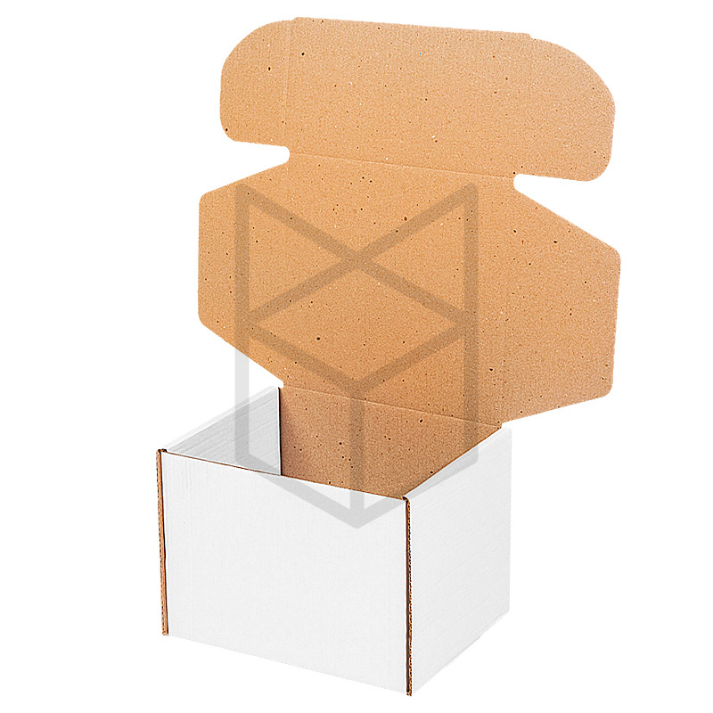 Коробка самосборная размерами 124х95х119 мм, модель Т22 МГК Белый. Для производства используется трехслойный микрогофрокартон, поверхность белая, подходит для брендирования и нанесения надписей. Внутренняя поверхность бурая (крафт). Коробки подходят для доставки, хранения продуктов, кондитерских изделий, сувениров. Применяются почтовыми и курьерскими службами.
