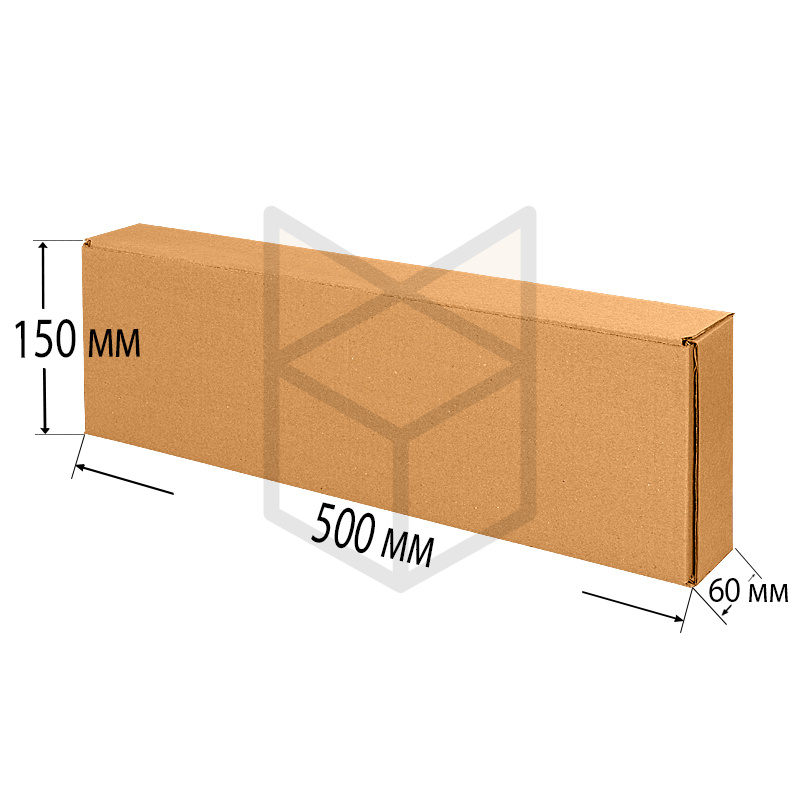 Самосборная коробка длиной 500 мм, шириной 60 мм и высотой 150 мм выполнена из бурого трехслойного картона Т-22. Сюда поместятся книги, игрушки, посуда, аксессуары, одежда, запчасти, бытовая техника. Гофрированный контейнер также станет прекрасным решением для хранения сухофруктов, сушеных трав и других сублимированных продуктов.